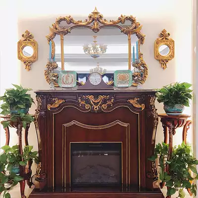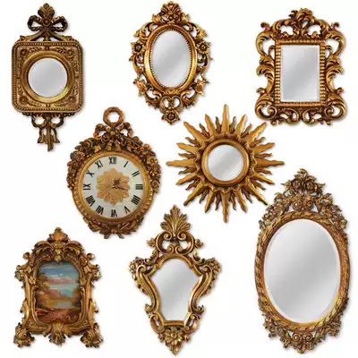 European-style wall hanging retro decoration mirror carved wall decoration living room background wall small size Baroque combination pendant