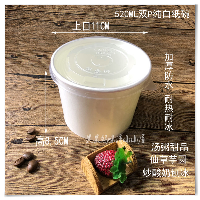 Thickened 520ML paper bowl disposable packaged soup porridge bowl with lid 16OZ stir-fried yogurt taro round fairy grass takeaway bowl