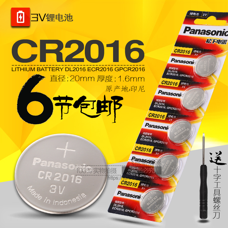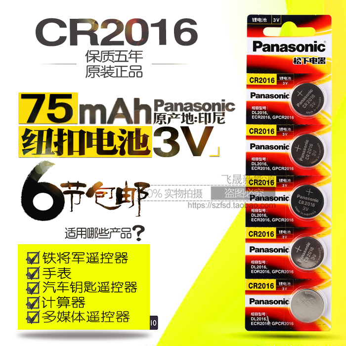 Panasonic CR2016 button battery 3V Ferris electric car General Electric car key remote control 6