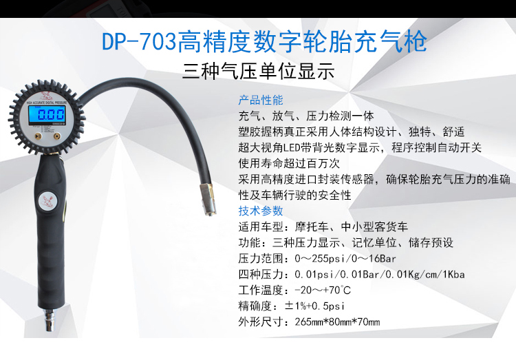 Digital display high precision LCD digital hand-held electronic tire pressure gauge Car tire inflation gauge gas gun