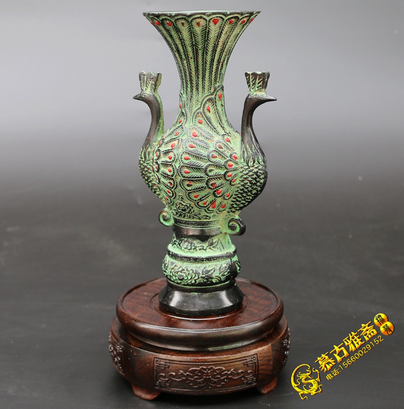 Bronzes imitated antique pendulum pieces Peacock vase Living room Home Decorative Arts Gift Pendulum accessories Antique Ancient Play Collection