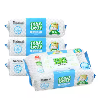 Mifully bear baby cleansing wipes 80 pieces * 4 bags with lid baby wet tissue paper without even drawing temporary treatment