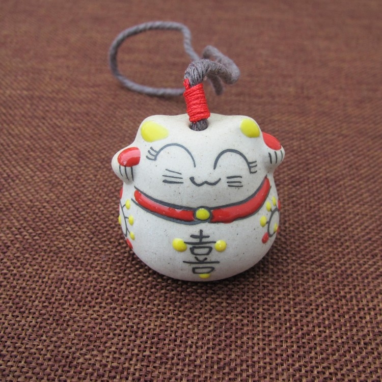 Japanese-style Cat Ceramic Fengbell Car Hanging Door Jingdezhen Ceramic Little Accessories Manufacturers Direct Selling