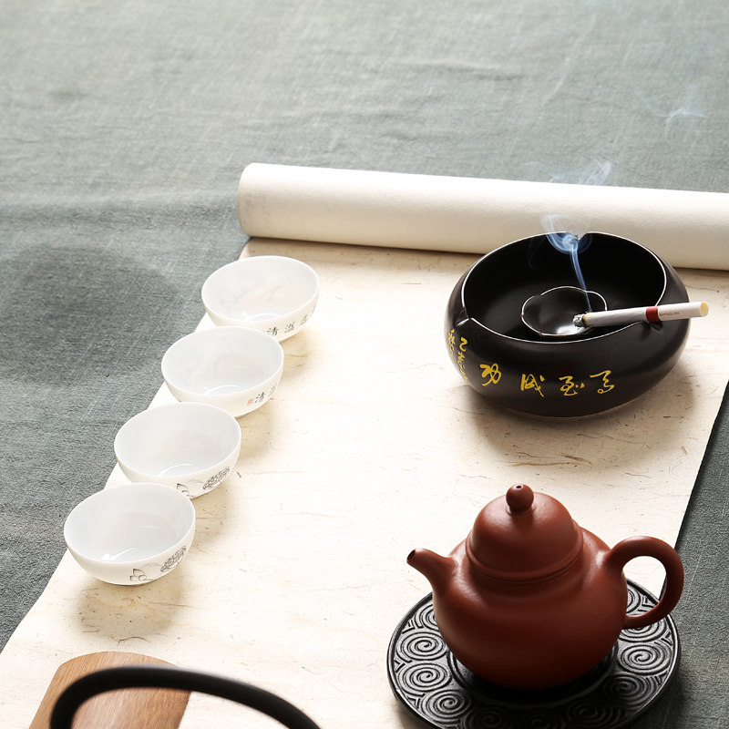 Shajin ashtray Zen tea blindly ashtray (black) jade porcelain ashtray-Jade shadow Hexiang big exhibition Hongtu ashtray (black) medium inner arc-Zen tea blindly medium inner arc-Haina Baichuan medium inner arc-Houde carrier