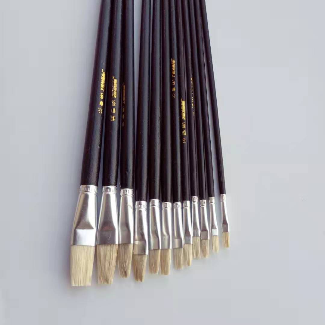 Oil paint pen flat head row pen single bristle small paint industry with hard bristle brush set hair sweep gouache single