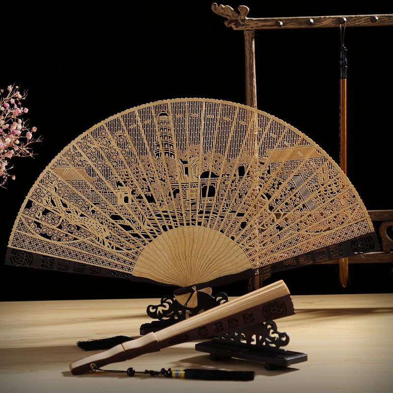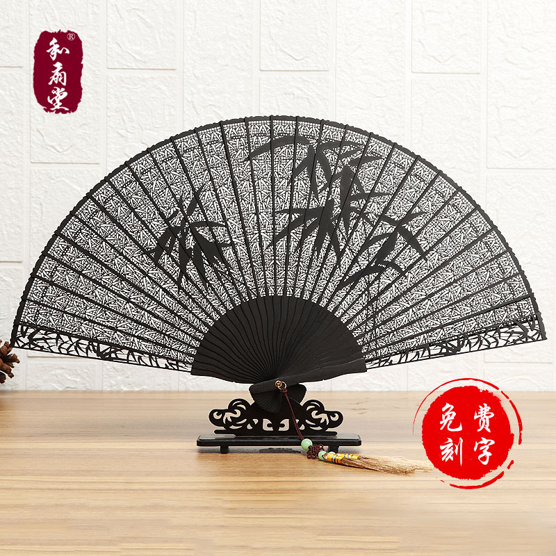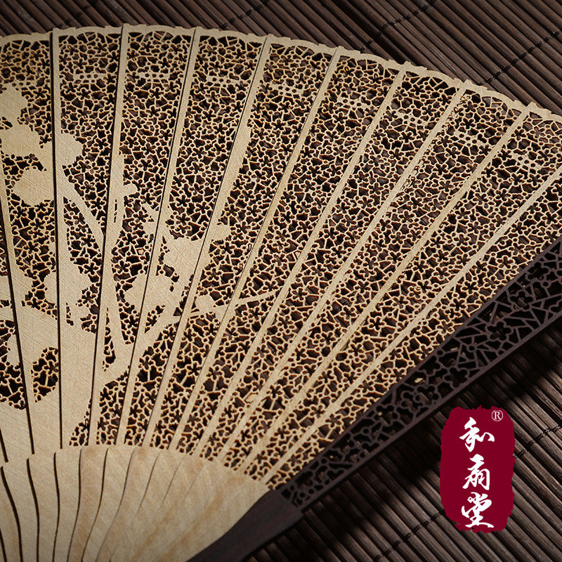 And fan China Wind 7 Inch Purple Sandalwood Mulch Fan sandalwood Fragrant Wood Fan out of the country Gift fan hollowed-out fan