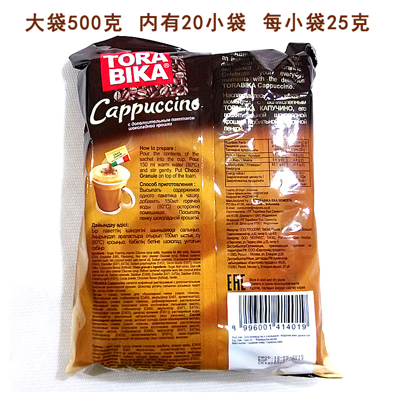 Russian original clothing imports Indonesia hot selling large bag cappuccino three-in-one intense and fragrant instant coffee full