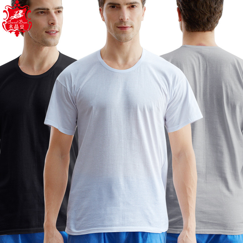 Sweatshirt men's pure cotton middle aged round collar full cotton old man shirt loose bottom short sleeve for overweight vest old man