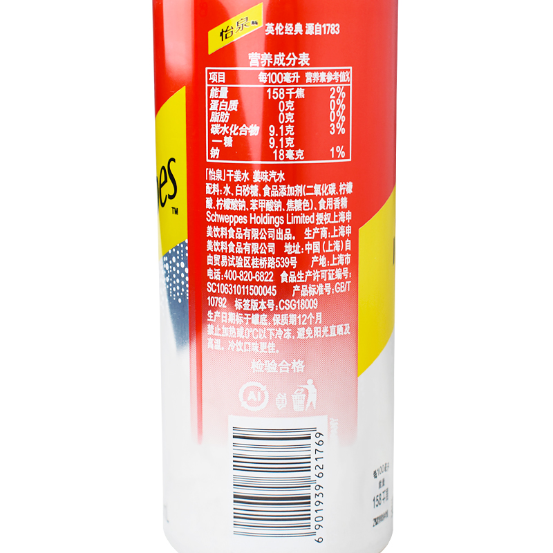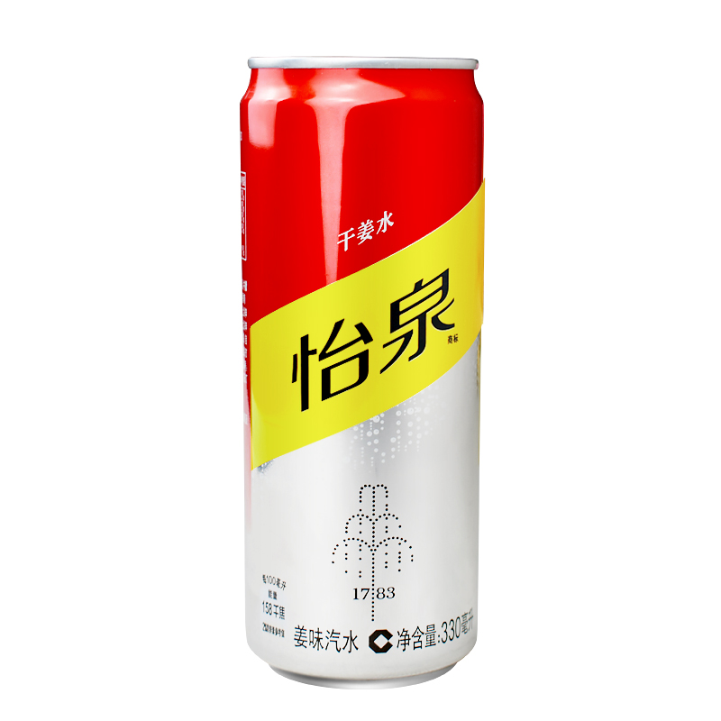 Yiquan dry ginger water carbonated drink 330ml cans listening to Coca Cola