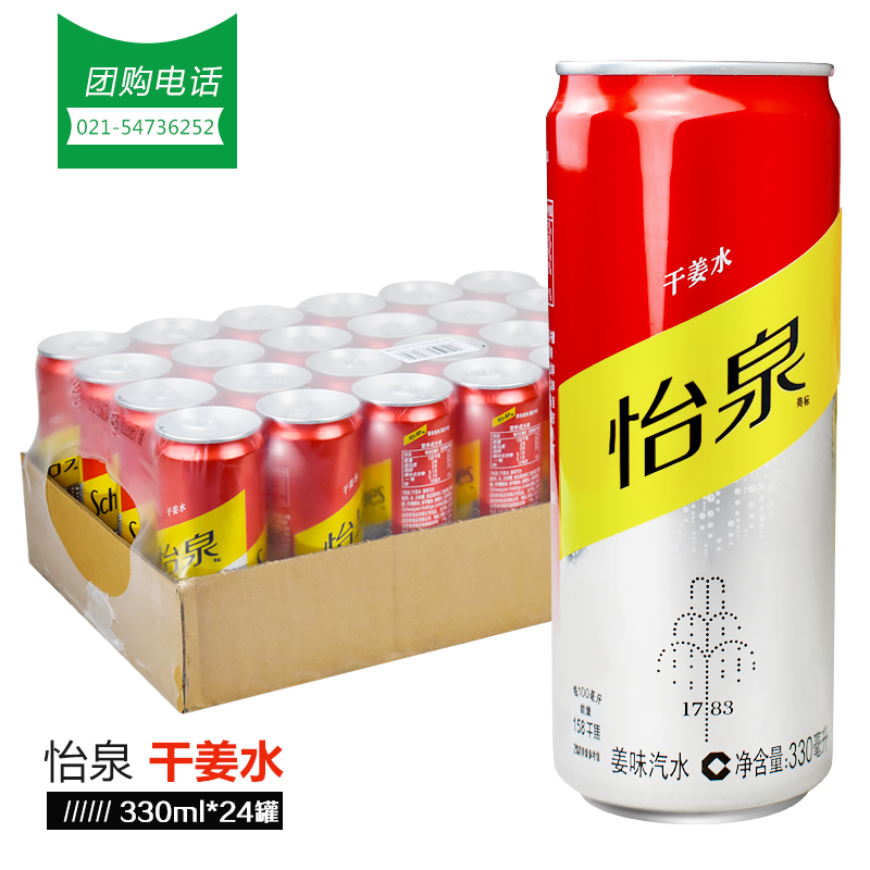 Yiquan dry ginger water 330ml carbonated soda drink 330ml*24 cans Coca-Cola products