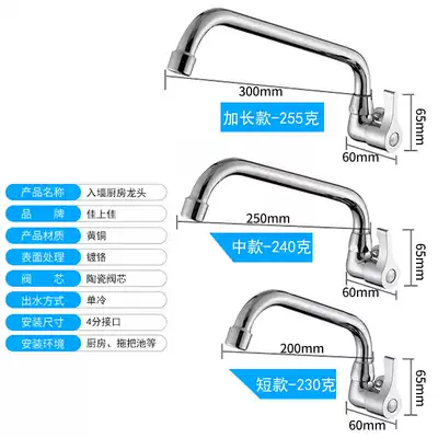All copper main body into the wall horizontal single cold extended 4 points kitchen dish basin laundry mop pool faucet 25 30cm