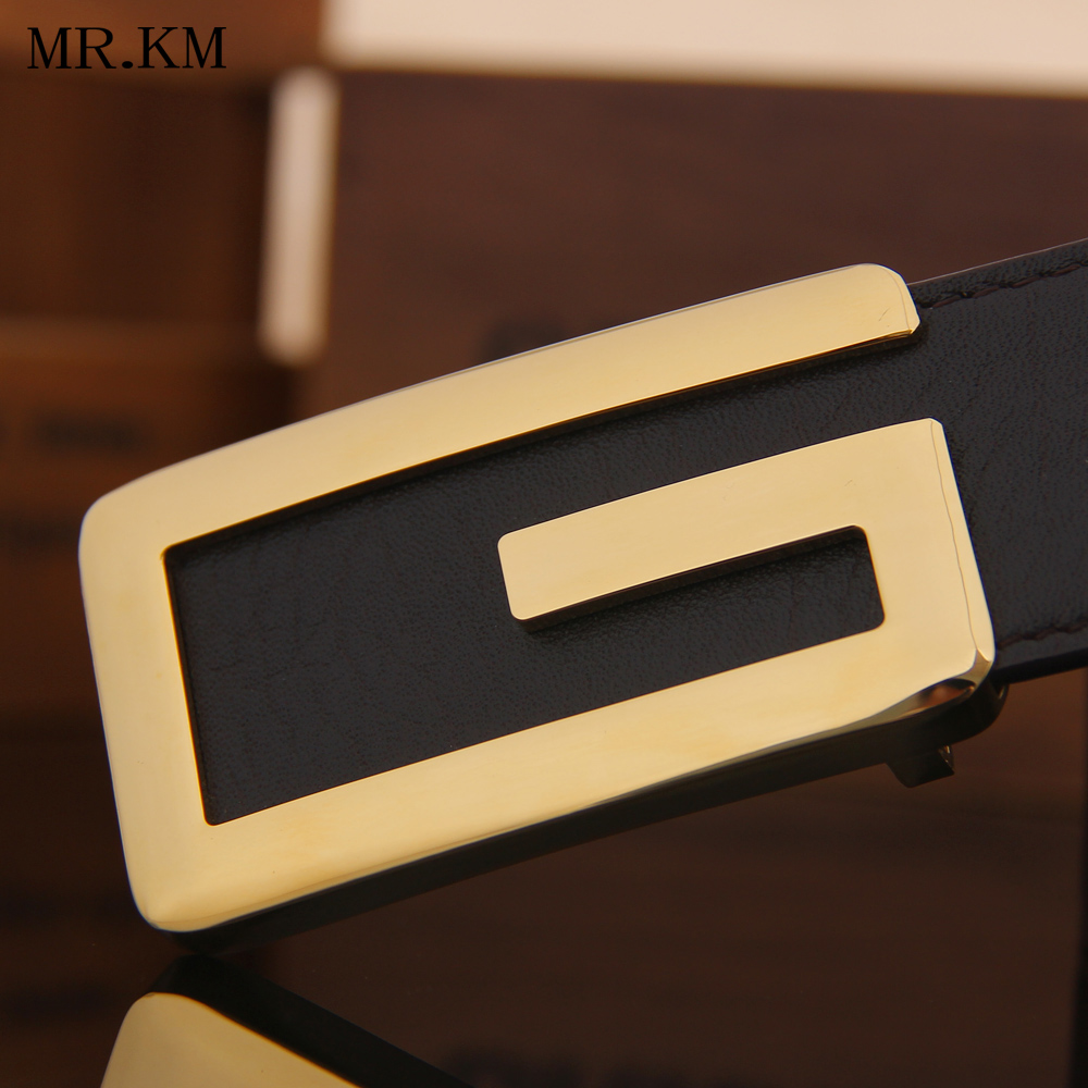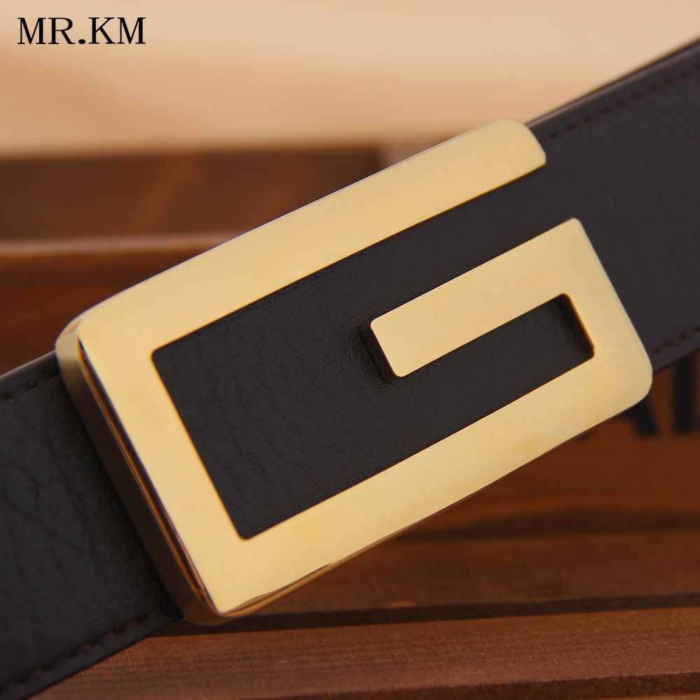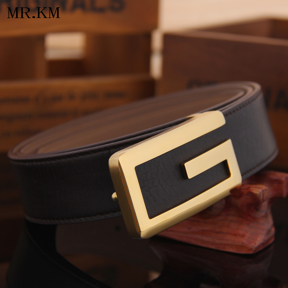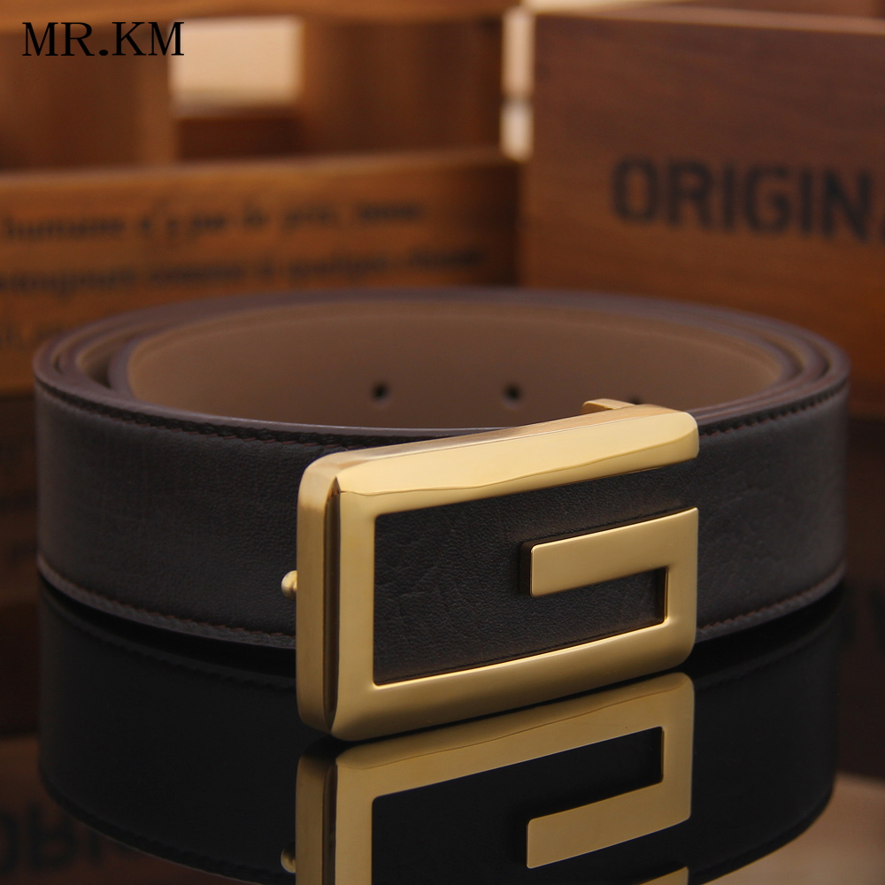 MR KM belt men's G buckle copper buckle head layer cowhide with frosted bottom fashion smooth buckle pants belt youth belt