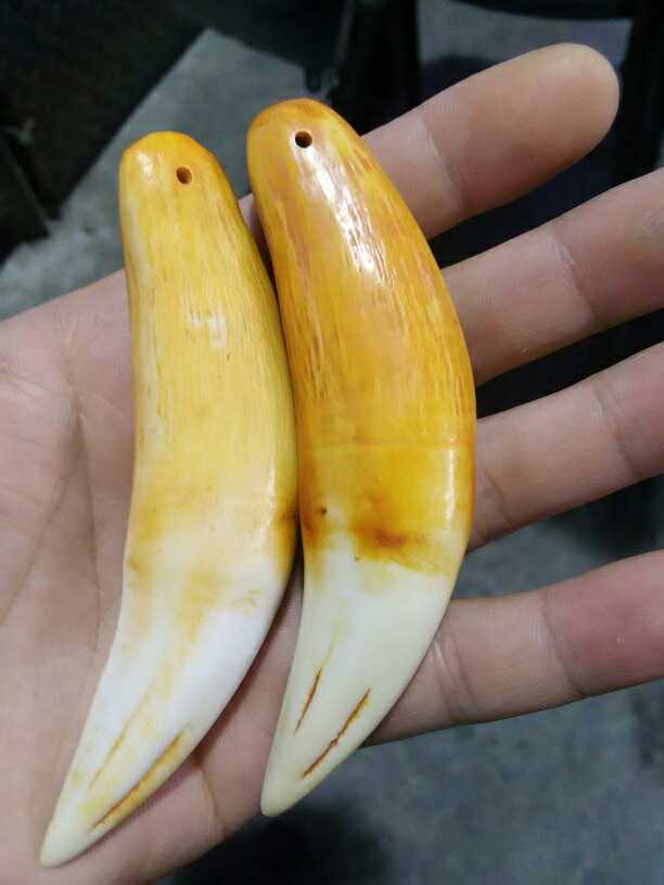 Wenwan collection imitation tiger tooth bone powder pressed animal tooth gift pendant pendant imitation big cat tooth