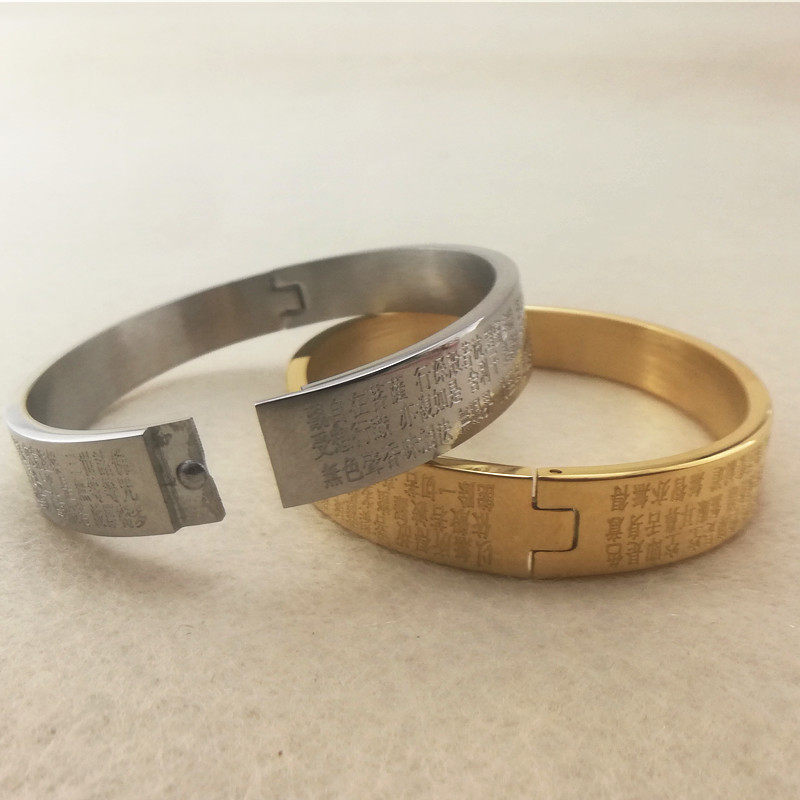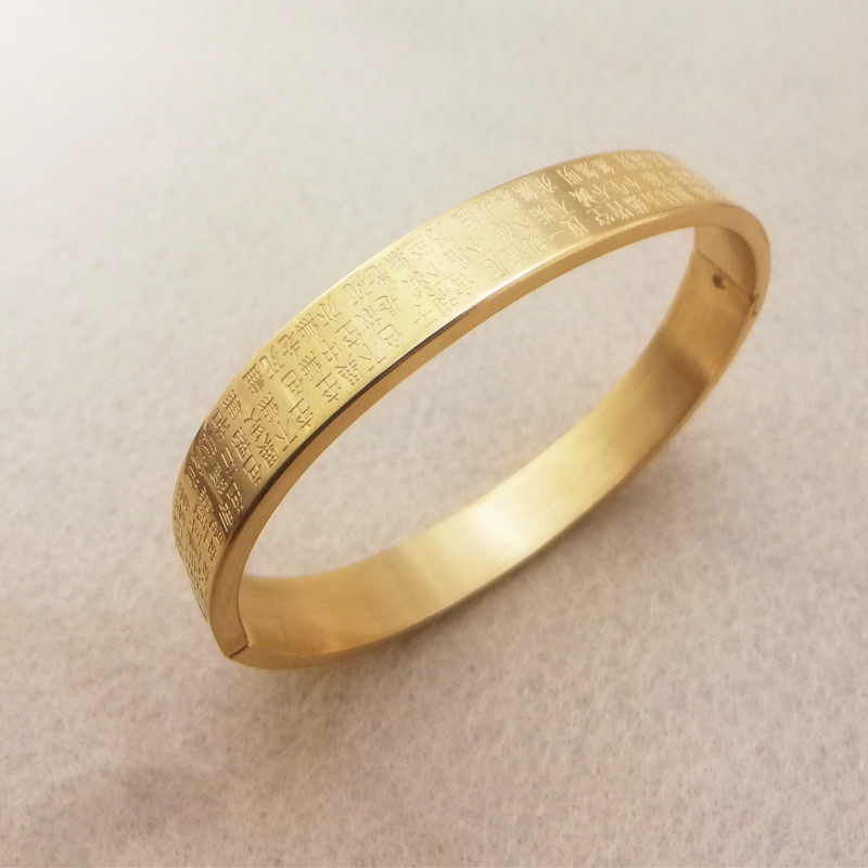 Titanium steel opening like a heart warp with a bracelet national ancient method solid glossy finish with a character spell and gold and silver two-color jewellery