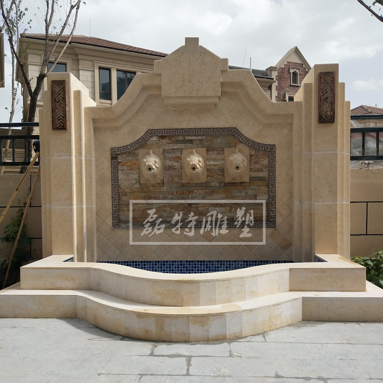 Sandstone exterior wall fish head water spout landscape courtyard water feature wall hanging embossed water spray fish mouth fountain decorative ornaments