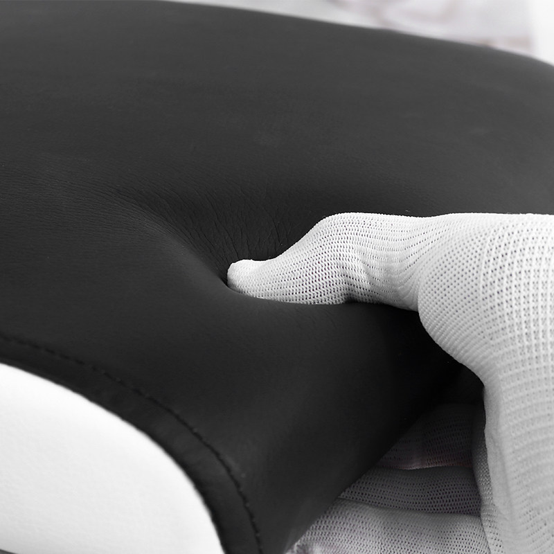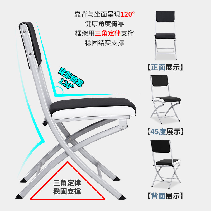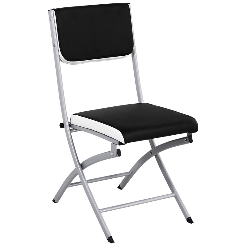 White face black edge folding chair a black face white edge folding chair a beige leather silver bracket square pipe a beige leather black bracket round pipe a grey leather black bracket round pipe one