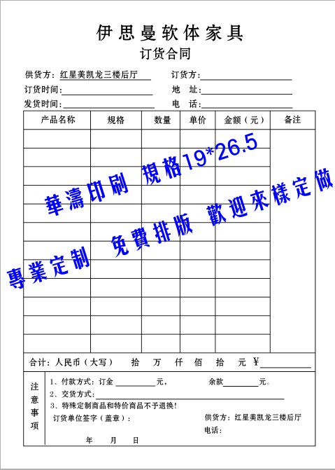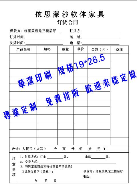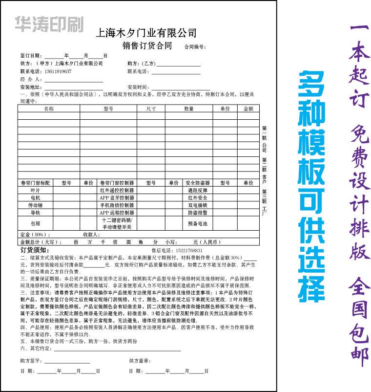 Furniture Order Form Customized Wooden Doors and Windows Sales List Ordering Contract Document Two Three Combined Delivery Note Receipt Customized