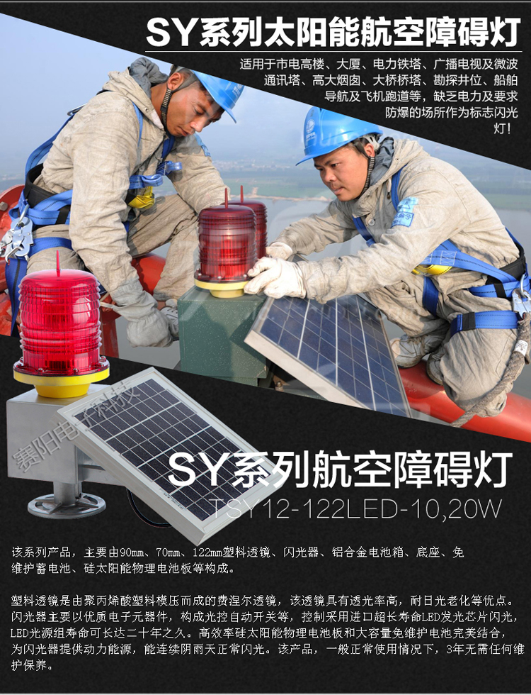 Double-head solar beacon lamp double lamp holder flashing at the same time medium light intensity solar aviation lamp double-head bracket size custom-made double lamp specially equipped with lightning rod