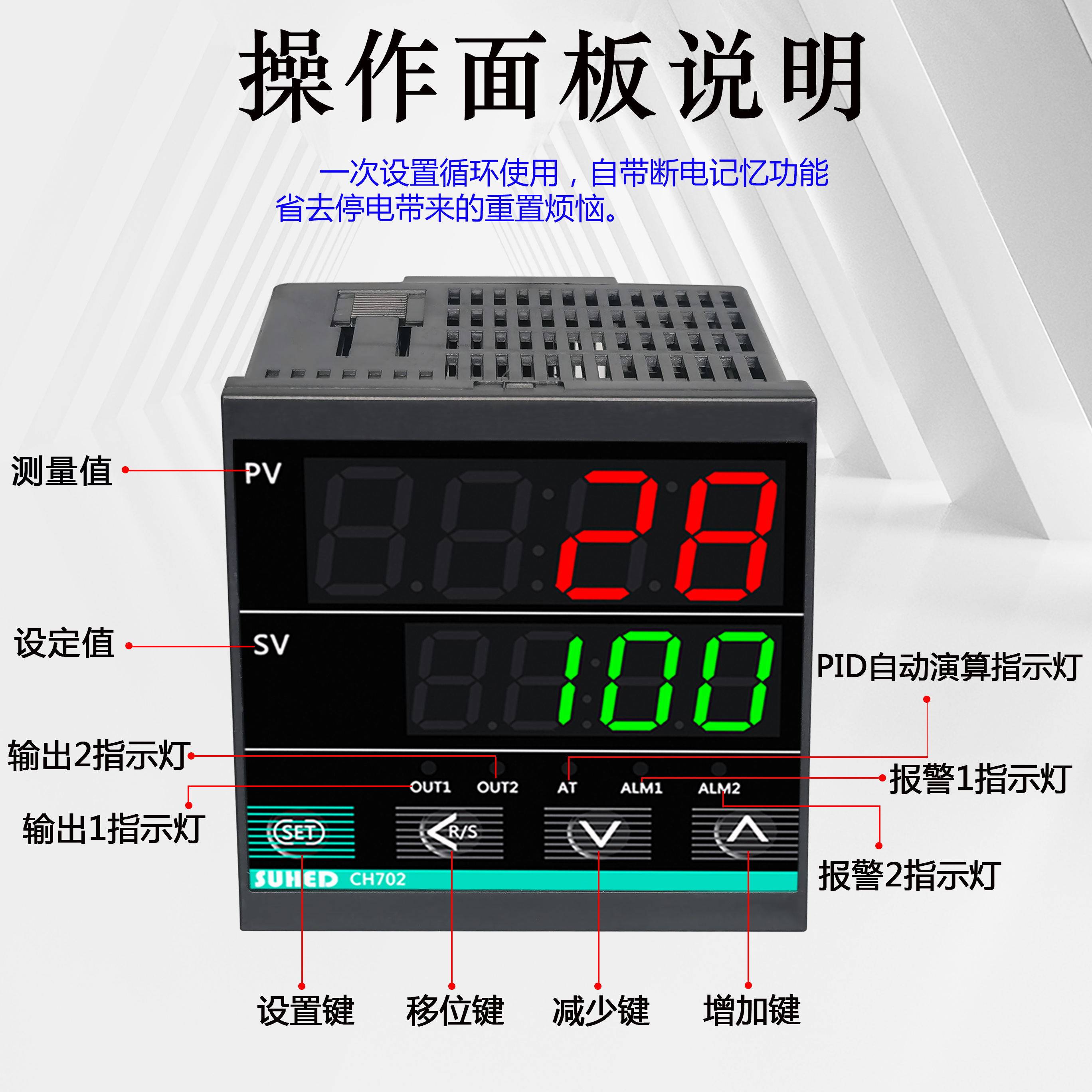 CH102 (48 * 48MM) CH402 (48 * 96MM) CH702 (72 * 72MM) CH902 (96 * 96MM) K type screws