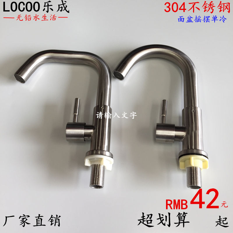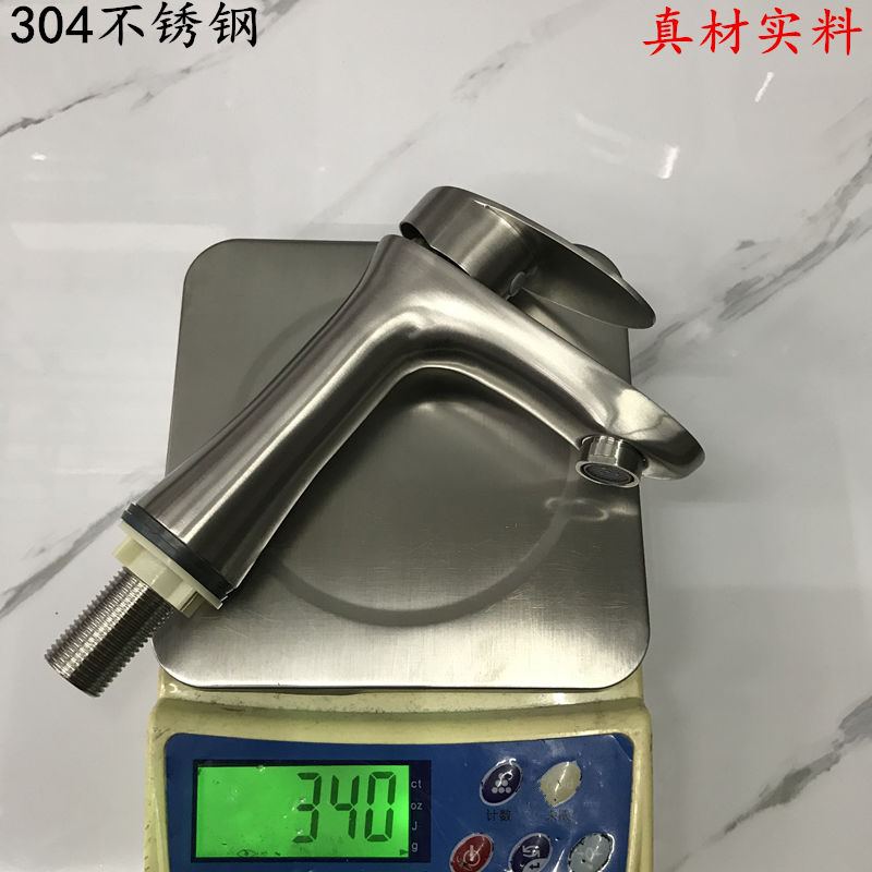 Washbasin single cold tap 304 stainless steel face basin tap Leapless basin single-hole wire drawing faucet 4 sub-connector