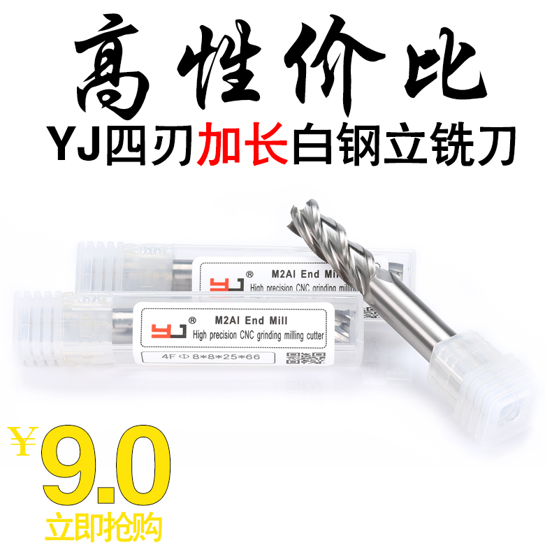 YJ ultra-hard white steel upright milling cutter lengthened four teeth 4 blades M2AI with aluminum high-speed net 3 0-25MM 4