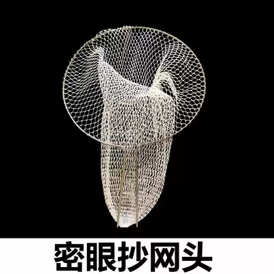 Dense eye net head wooden handle net head stainless steel net ring fish pocket double frame dense mesh eye bag fishing net fishing gear
