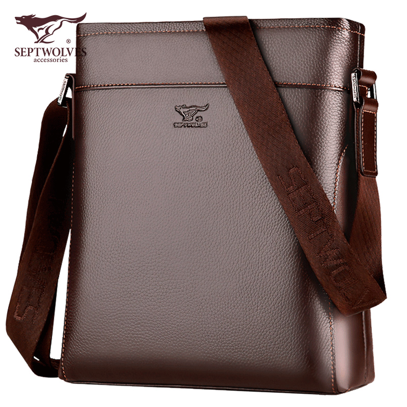 Septwolves men's bag genuine leather top layer cowhide men's one-shoulder messenger bag business casual bag shoulder bag backpack men's tide