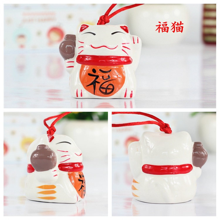 Japanese popular lucky cat ceramic wind chimes creative gifts cute mini car hanging accessories
