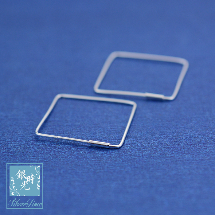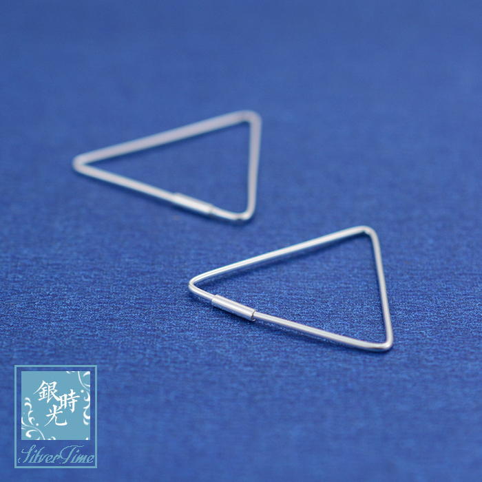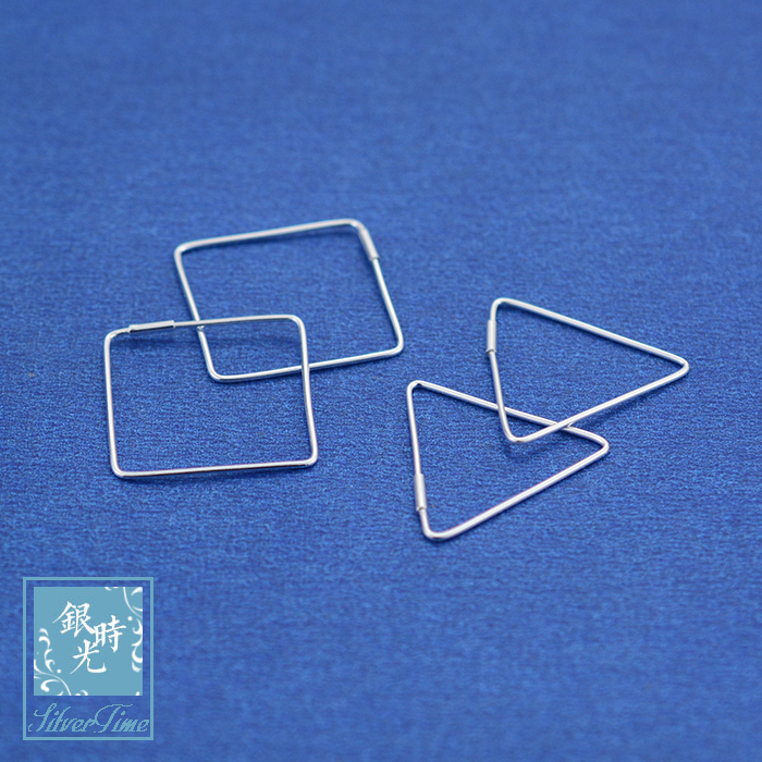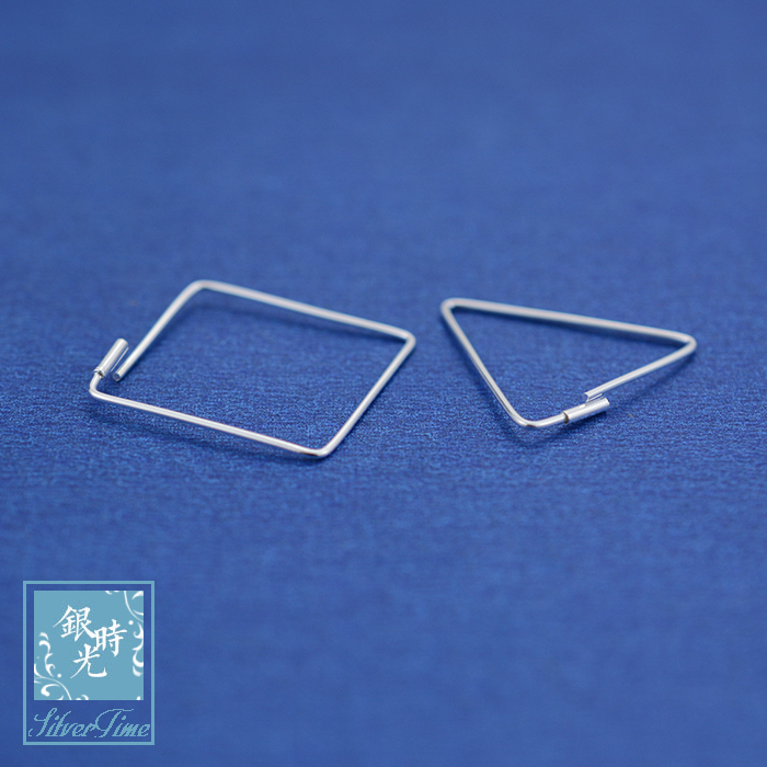 Silver time S925 pure silver earring sun's descent Song Huijo with the same square triangular ear ring minimalist earring