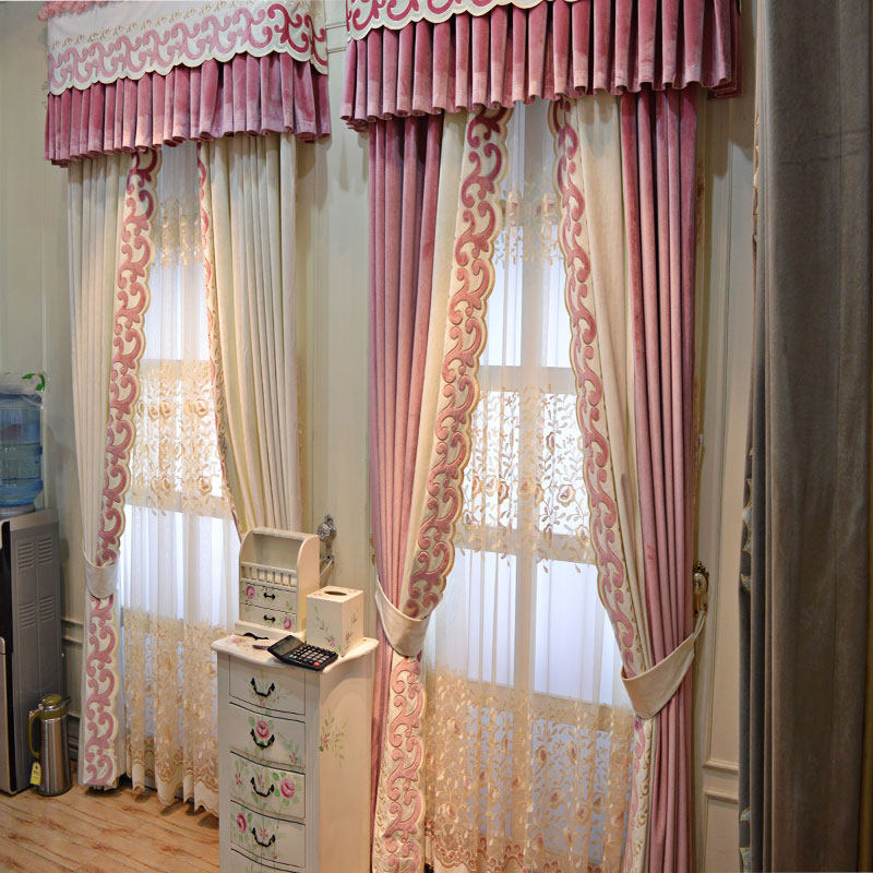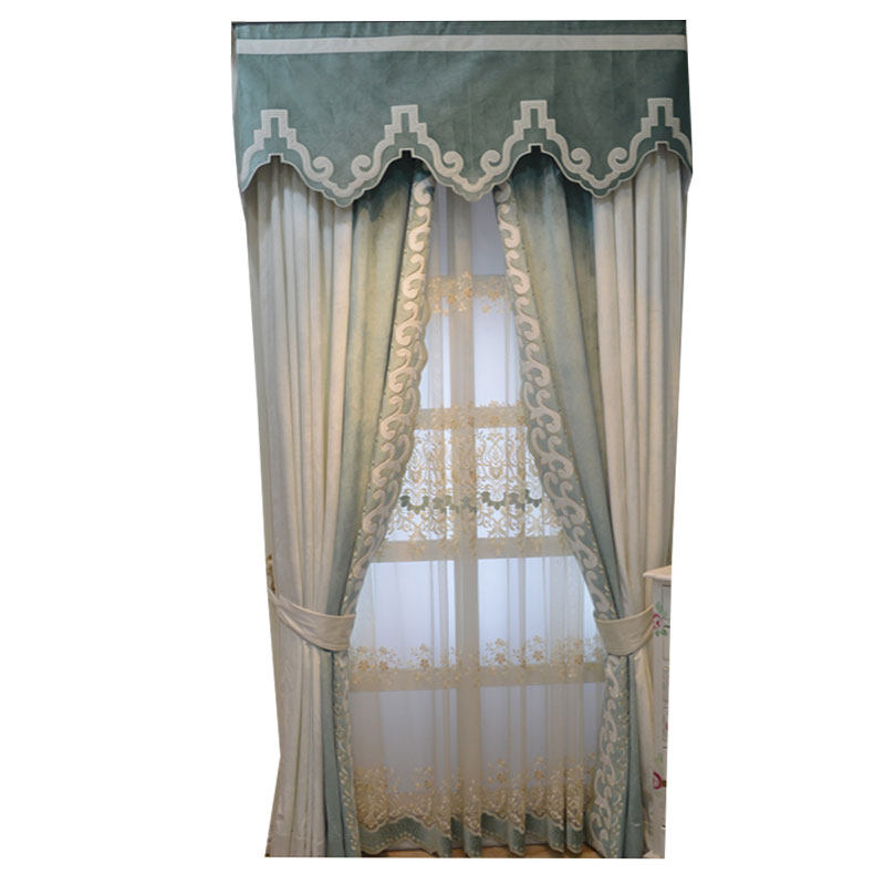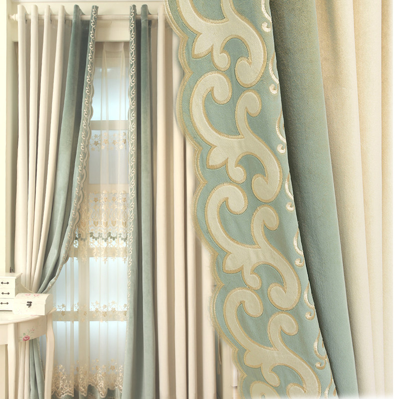 Dreams circle French high-end Italian velvet curtain cloth blue and white Mediterranean floor-to-ceiling window embroidered blackout stitching