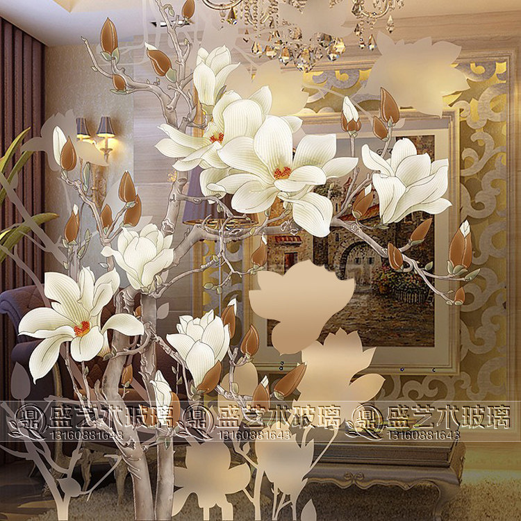 Simple style Carved screen Art glass entrance shoe cabinet Door partition Ceiling ceiling Modern magnolia
