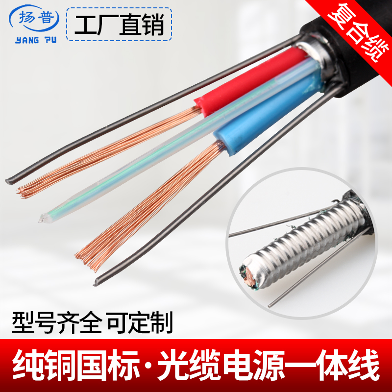 GB photoelectric composite cable Composite cable Fiber optic cable integrated line 4 6 8 12 core 24 fiber optic cable with 2 core power cord Pure copper 1 5 square 2 5 light skin line outdoor armored buried