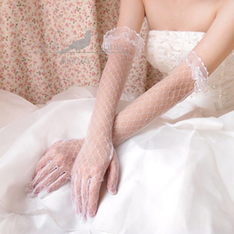 Summer slim Transparent Mesh Veil Bridal Glove Lengthened Wedding Dresses Wedding Gown Accessories Lace Long Gloves