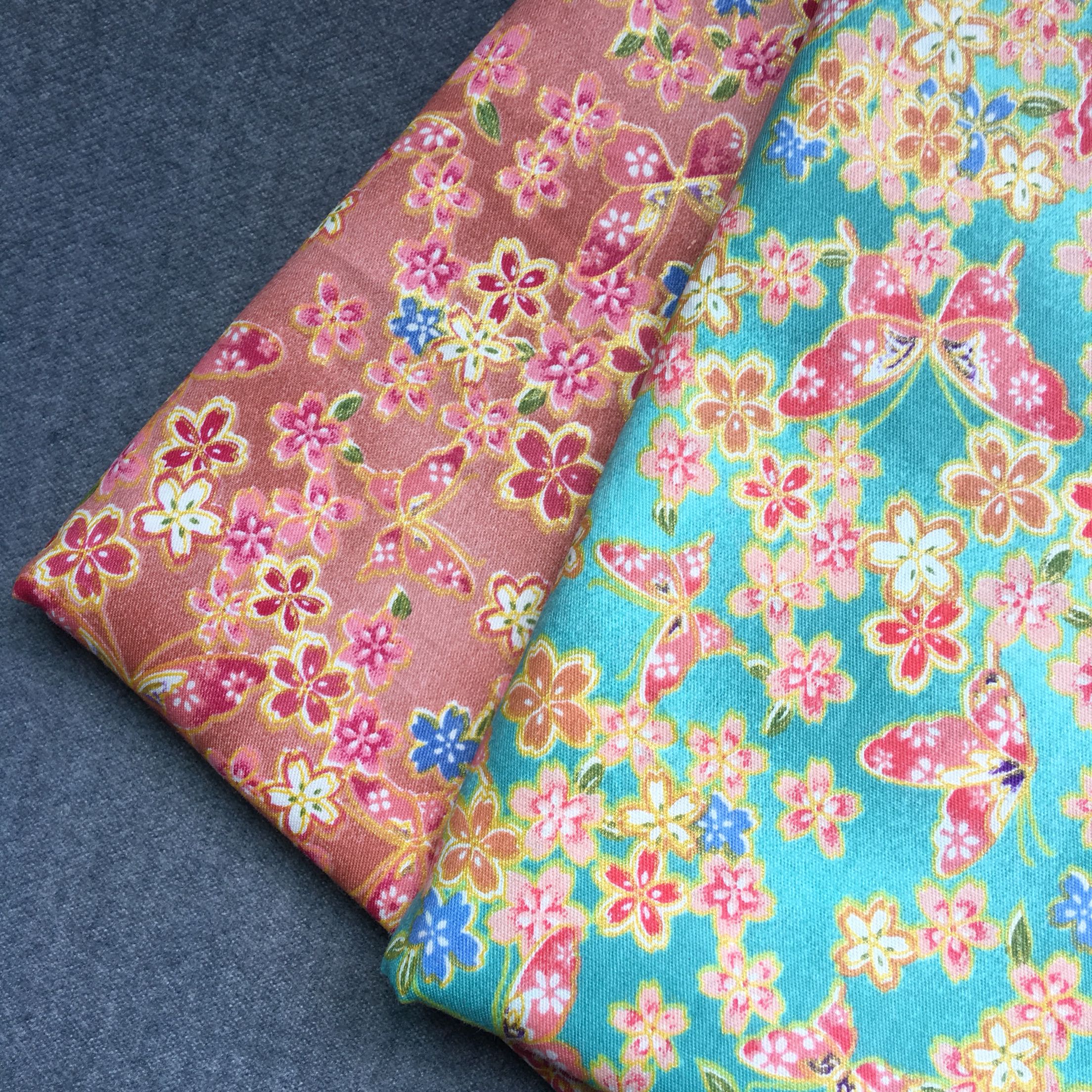 (twill cotton fabric) bjd qipao kimono kimono ob11 foreign dress Waters cloth pure cotton cherry blossom bright color fabric