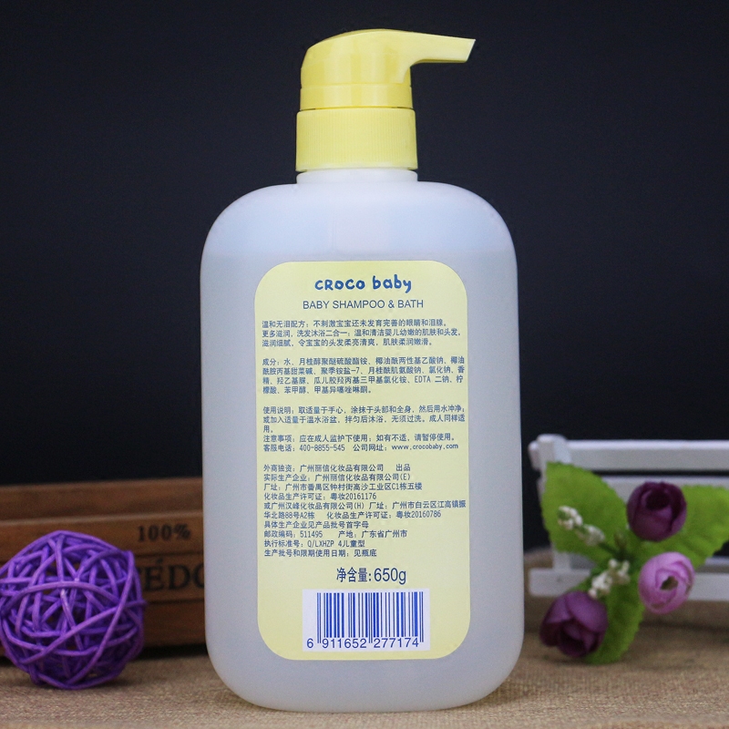 Hong Kong Crocodile Baby Baby Shampoo Body Wash 2-in-1 650g Silicone-Free Oil Gentle Tear-Free Formula