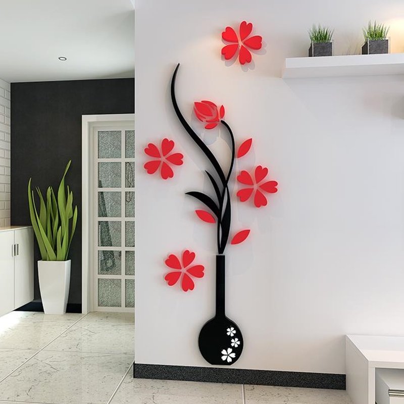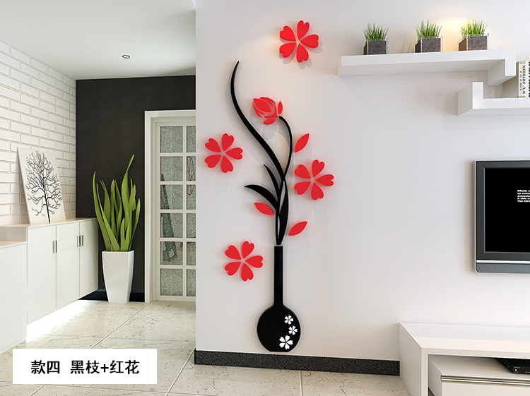 Vase Plum 3d Crystal Acrylic Solid Wall Sticking Living Room Sofa TV Background Xuanguan Wall Home Ornament Wall Sticker