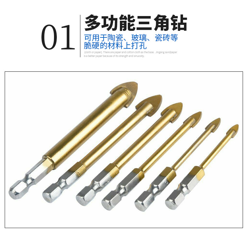 Direct selling carbide triangle glass drill tungsten steel tile drill 4mm5mm12mm hole opener set