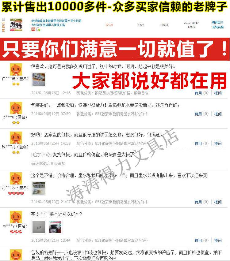 851 Black carbon 1 bottle-No pen 853 Pure blue ink 1 bottle-No pen 854 Ink Blue ink 1 bottle-No pen 855 Red Ink 1 bottle-No pen