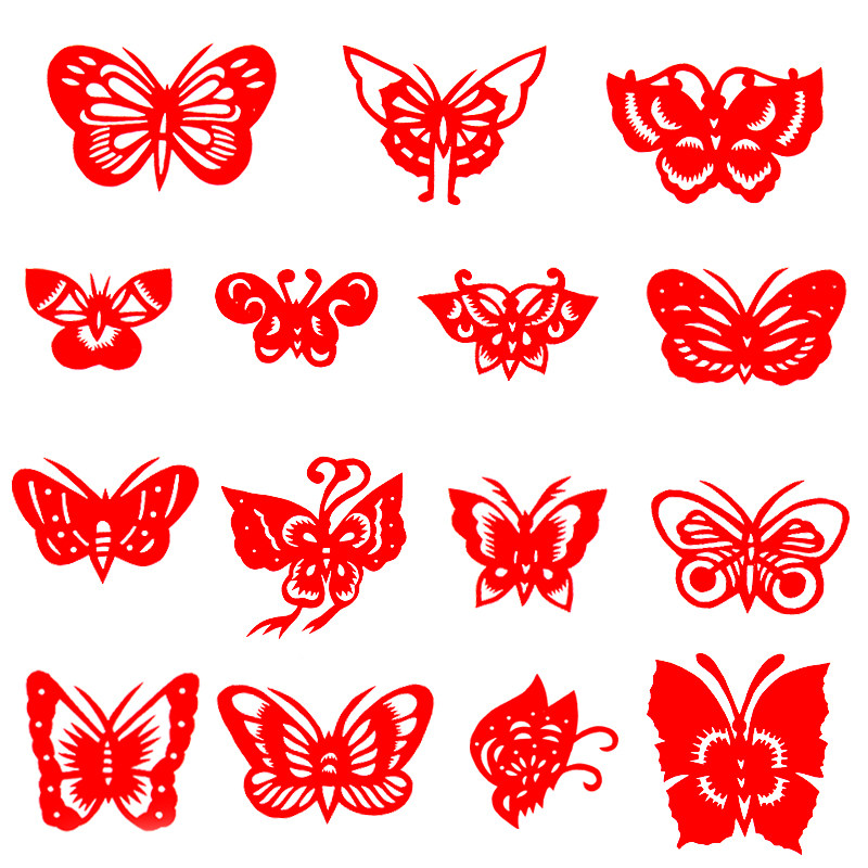 Qingdao Guya Handmade Cut Paper Double Face Red Xuan Paper Small Butterfly 100 Butterfly Fig. 100 Hitch Cartoon Toddler Child Window Flowers