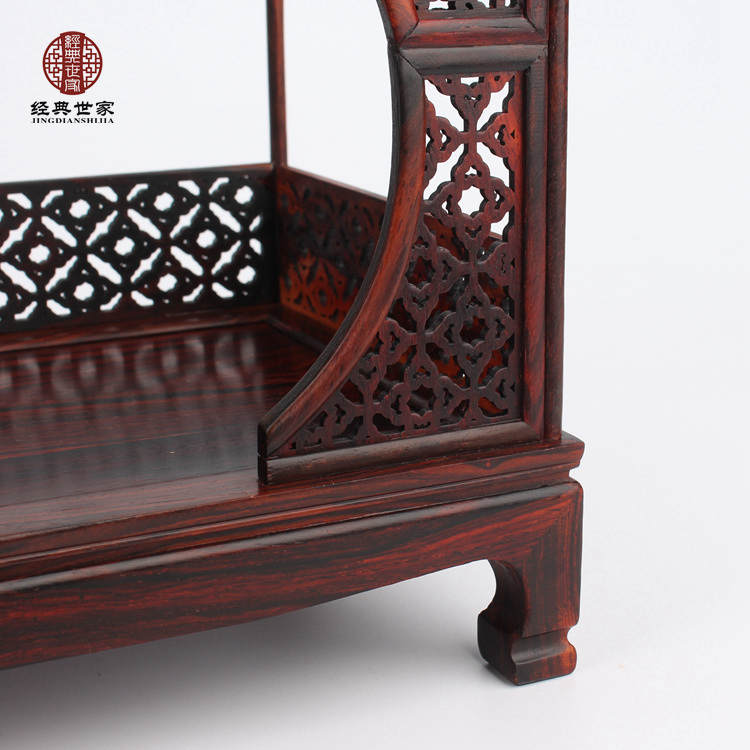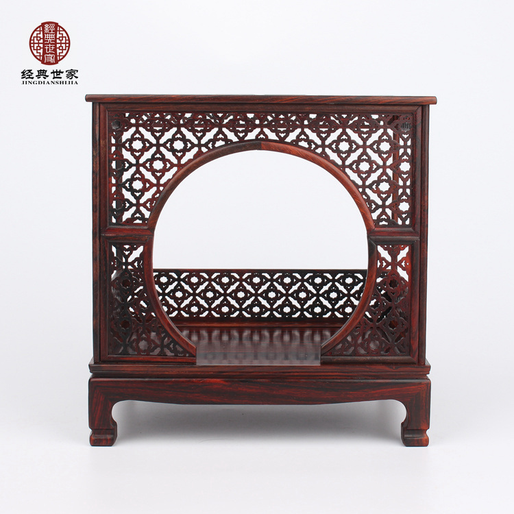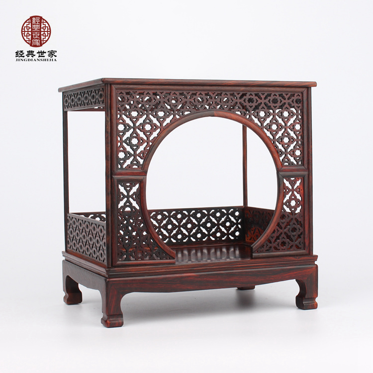 Red Wood Carved Red Acid Branches Moon Door Bed Rack Bed Red Wood Handicraft Ming and Qing antique miniature furniture models small pendulum pieces