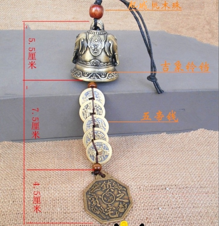 Copper Five Imperial Money Elephant Bell Pan Tai Chi Eight Divination Mirror Wind Bell Pendants Hanging Accessories Home Shop Ancient Numismatic Ornaments