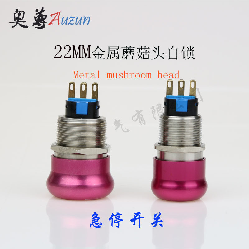 22mm Metal Button Mushroom Head Self Lock Switch Rotary Push Lock Type Rush Stop Switch Stainless Steel Waterproof Rust Prevention