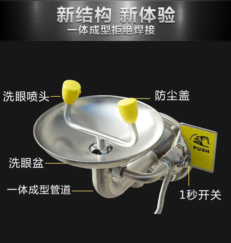 304 stainless steel chemical inspection plant to pick up wall type economical type double oral spray head emergency wall-mounted eye washer