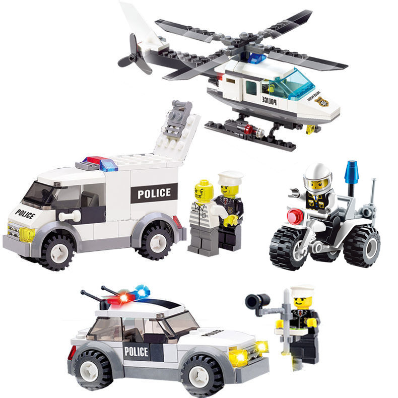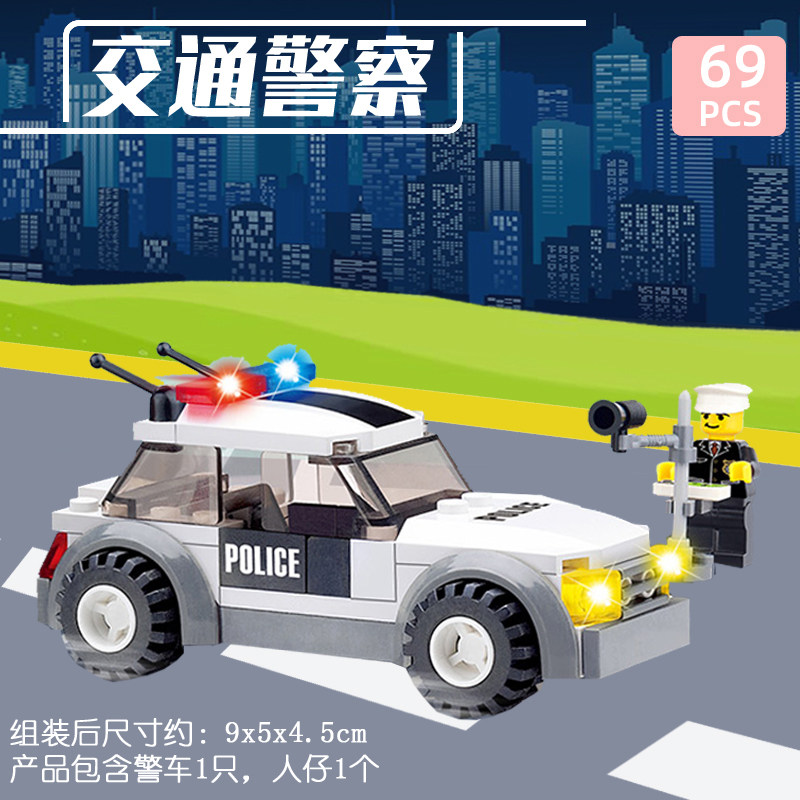 Children Assemble Small Grain Building Blocks Boys Assembly Police Station Series Traffic Police Moto Police Car Helicopter Toys-Taobao