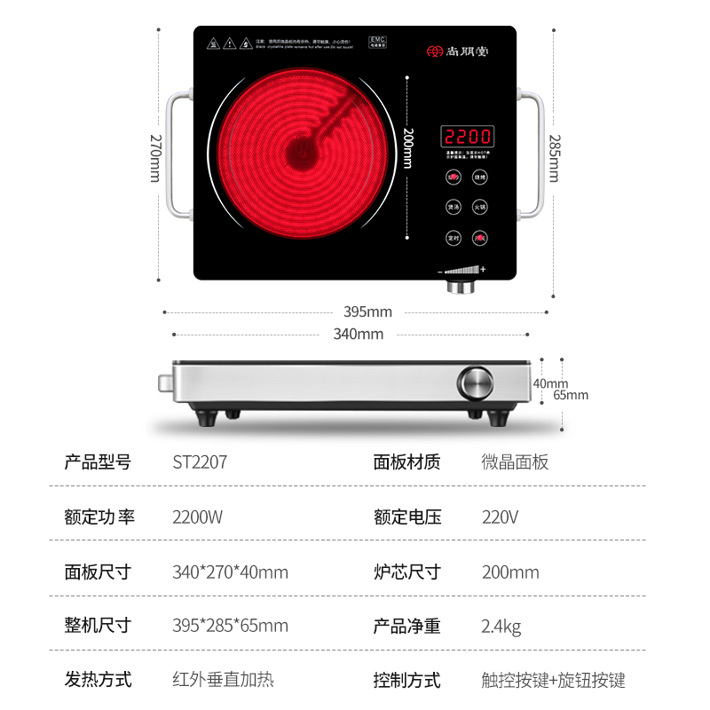 Shangpentang black crystal stove Household desktop hot pot brewing tea Light wave stove Not pick pot Induction cooker High power black crystal stove