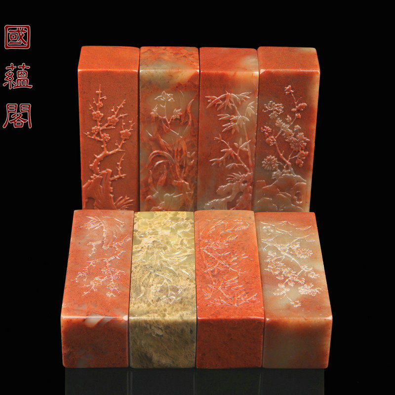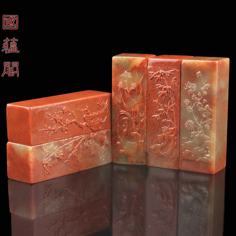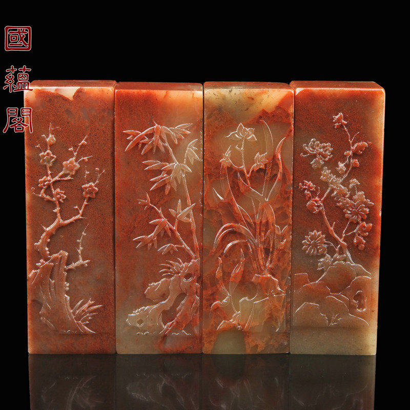 3X9CM Shoushan stone plum, orchid, bamboo and chrysanthemum seal practice chapter material gold stone seal carving seal stone name calligraphy and painting seal