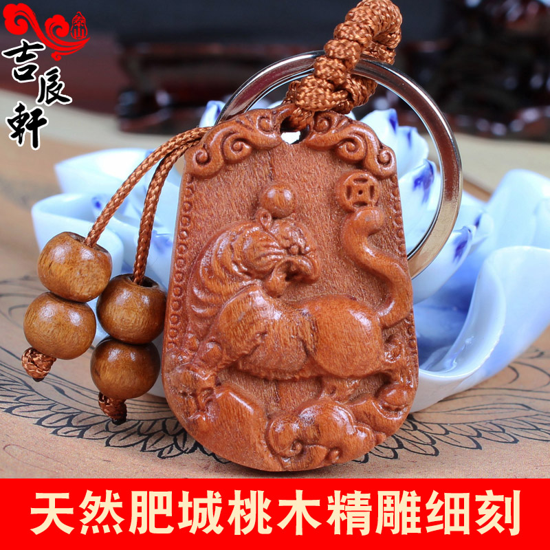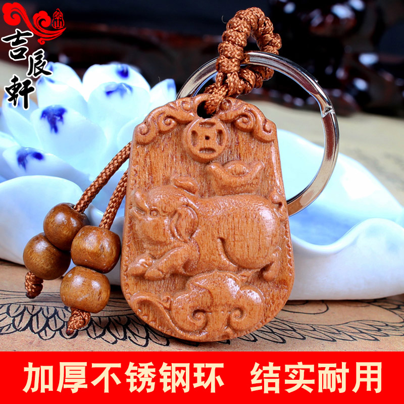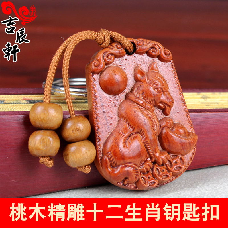 Mahogany keychain wood 12 zodiac pendant rat cow tiger rabbit dragon snake horse sheep monkey chicken pendant wood carving