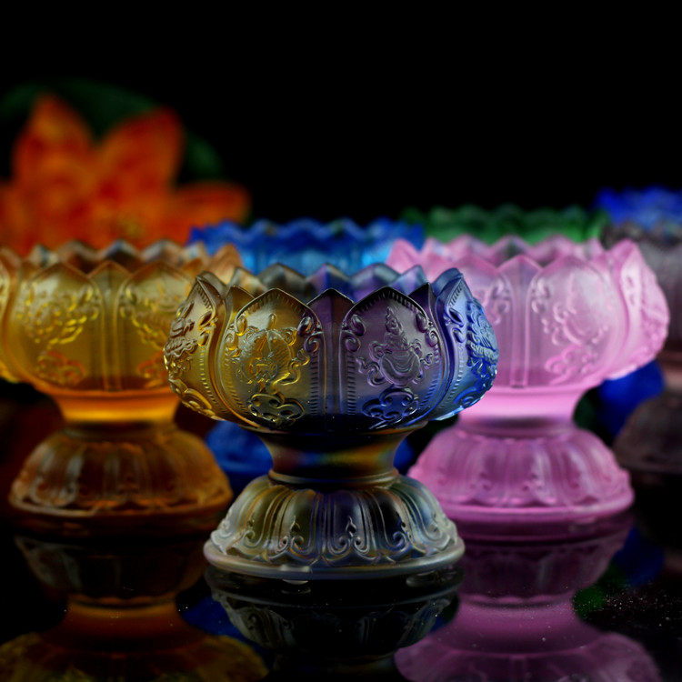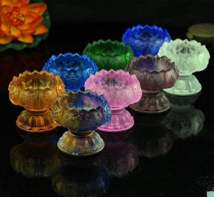 Eight auspicious for a bowl for a lamp Buddha lamp water supply cup Buddha's family Seven Po glazed lotus light candle ghee lamp holder big number