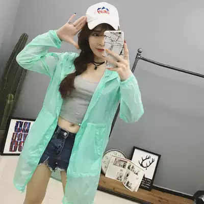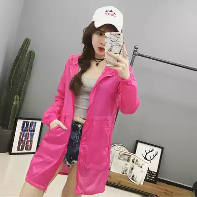 2017 new sunscreen clothing women's medium and long version hooded large size thin anti-UV beach skin clothing jacket
