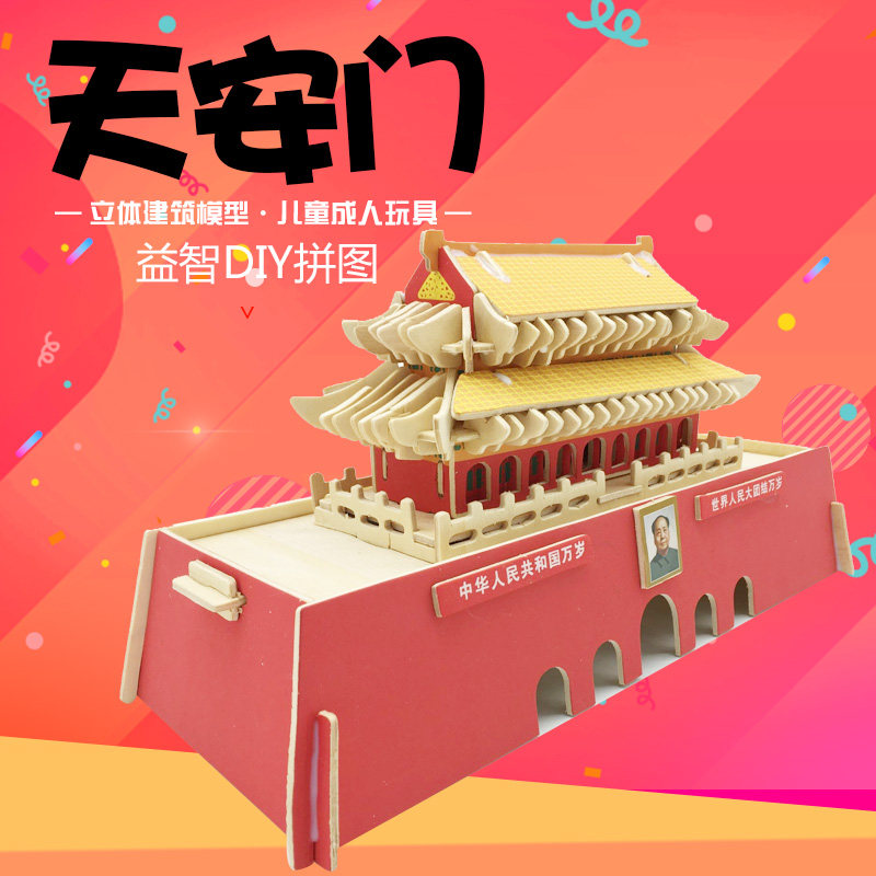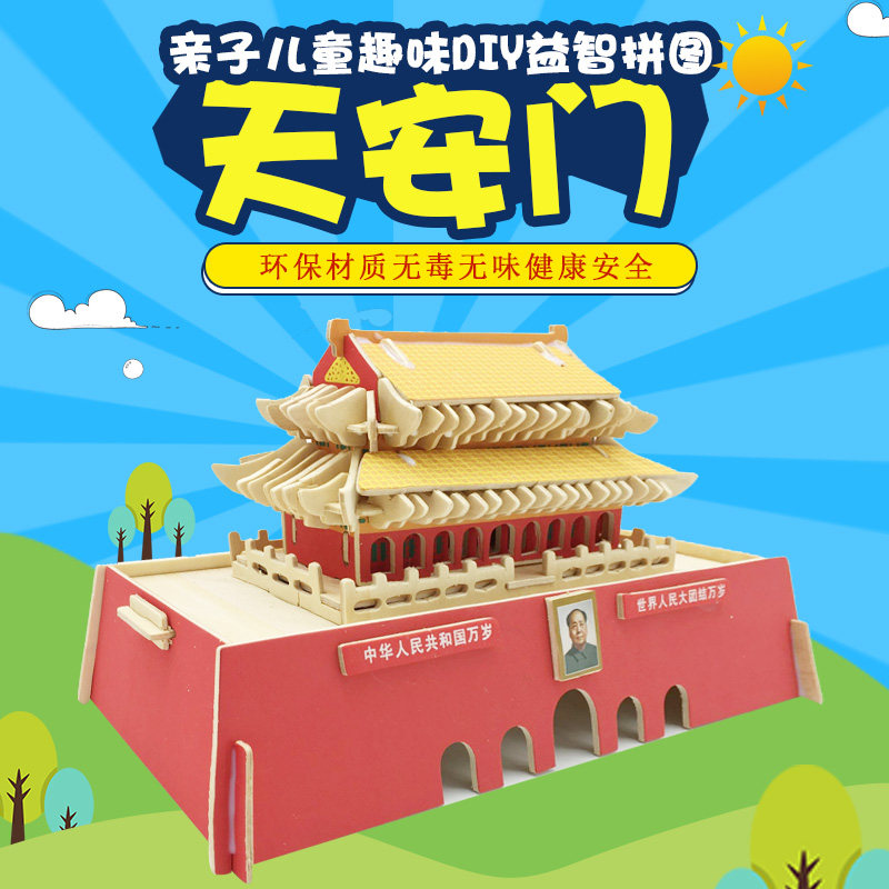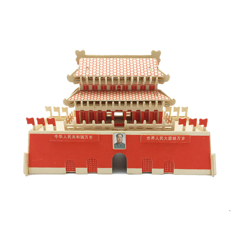 Adult puzzle wooden simulation model children handmade DIY assembly 3D stereo puzzle Beijing Tiananmen